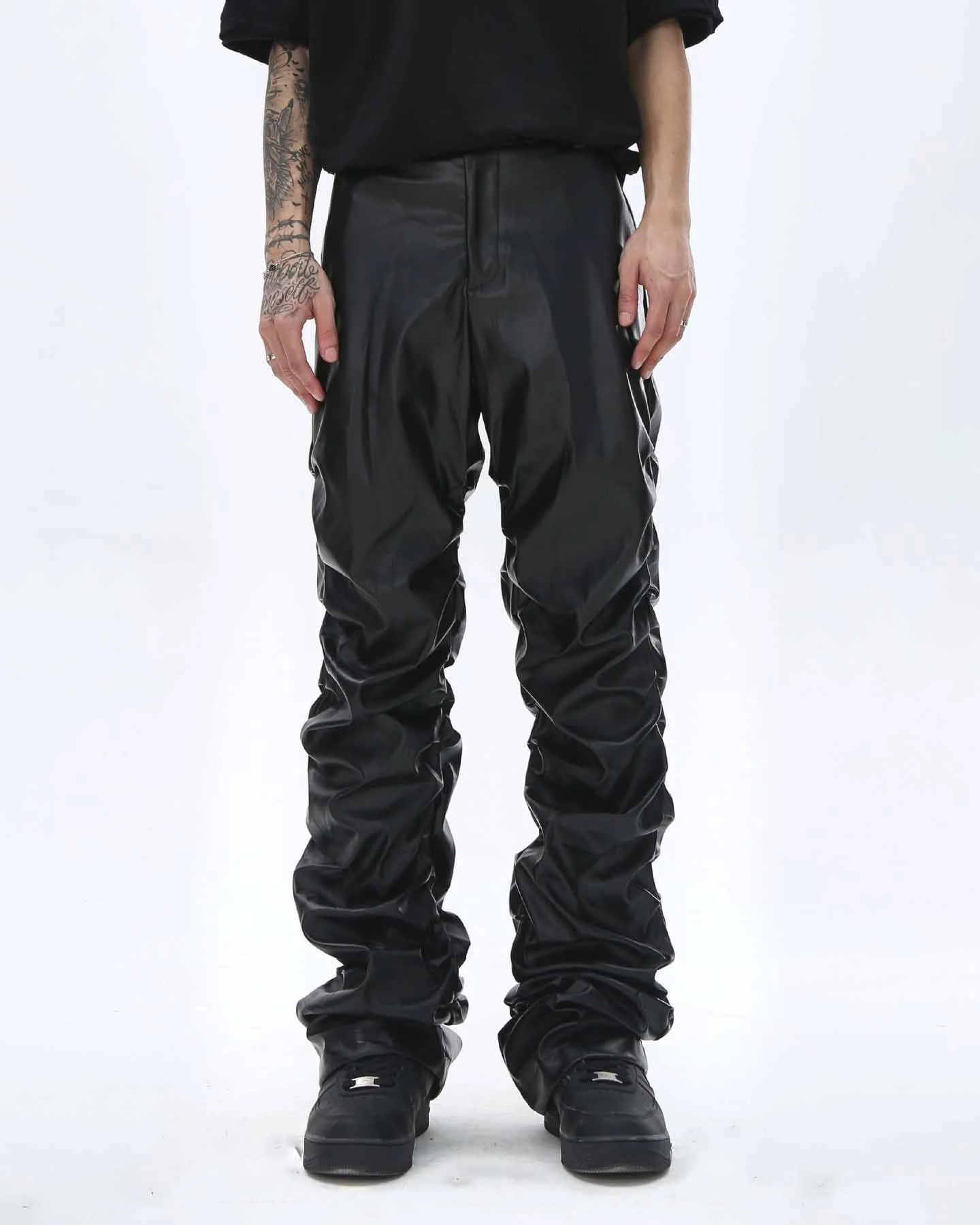 Pleated Pu Jeans