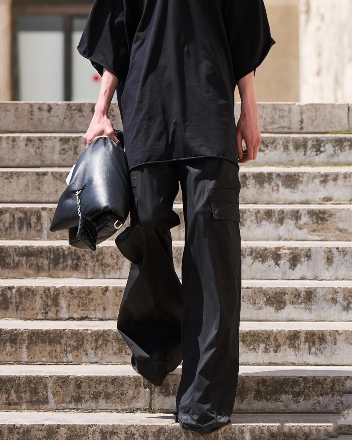 Black Wide-Leg Cargo Pants – Streetwear Baggy Trousers with Zipper & Drawstring